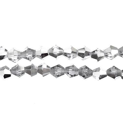 Bicone 2 Strand 7"- 4mm Transparent Half Silver Iris