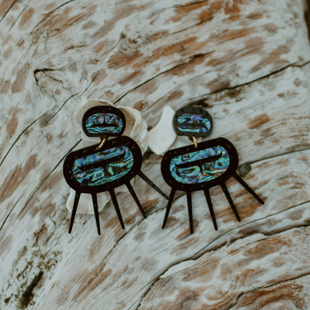 This classic Copper Canoe Woman earring is inspired by the love of urchin held by Vina's mother, and childhood memories of the joy the bounty of the sea brought to her family.