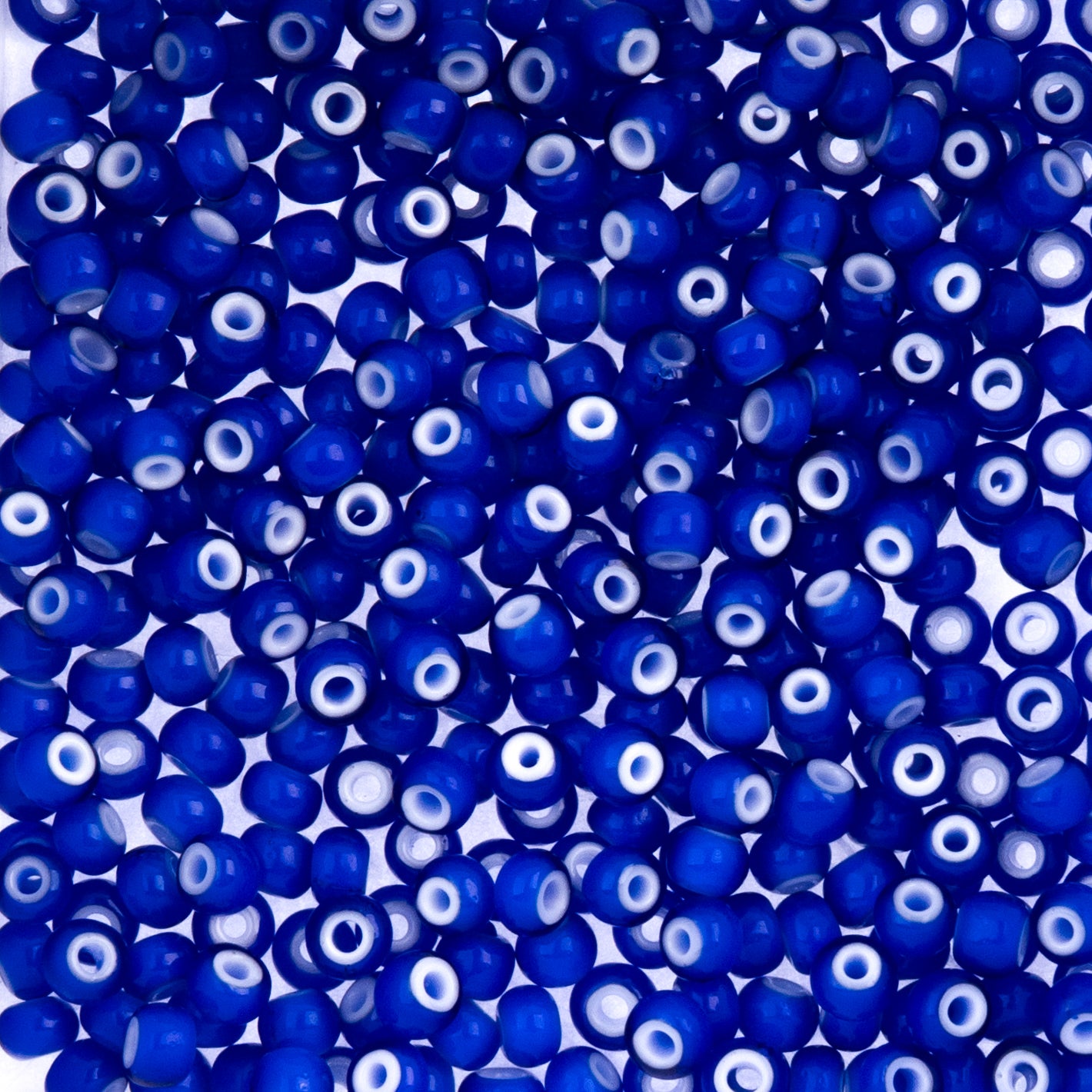 (Vial Czech Size 6/0) White Hearts Cobalt Blue